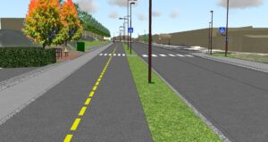 Fortau langs gatas østside blir bygget om til sykkelveg med fortau, og det etableres en grøntrabatt mot kjørevegen.